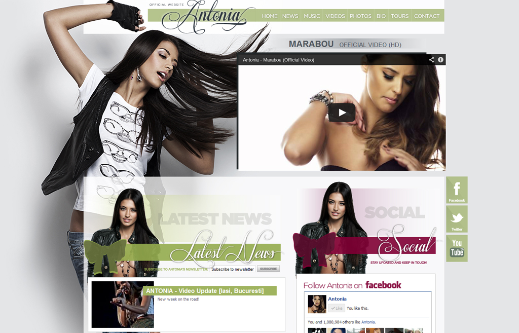 http://www.antoniaofficial.comEste un site de prezentare complex cu panou de administrare realizat pentru un studio de productie video