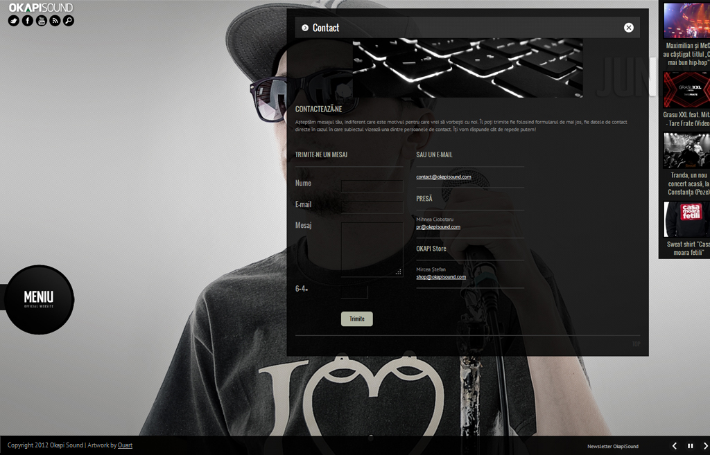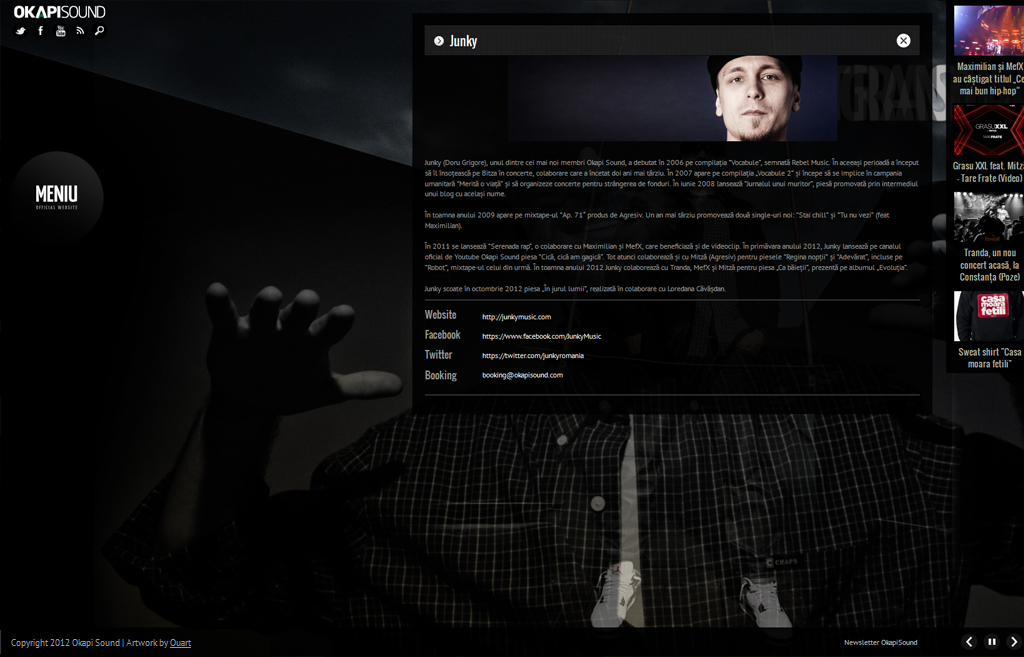 http://www.okapisound.comEste un site de prezentare complex cu panou de administrare realizat pentru o cantareata autohtona